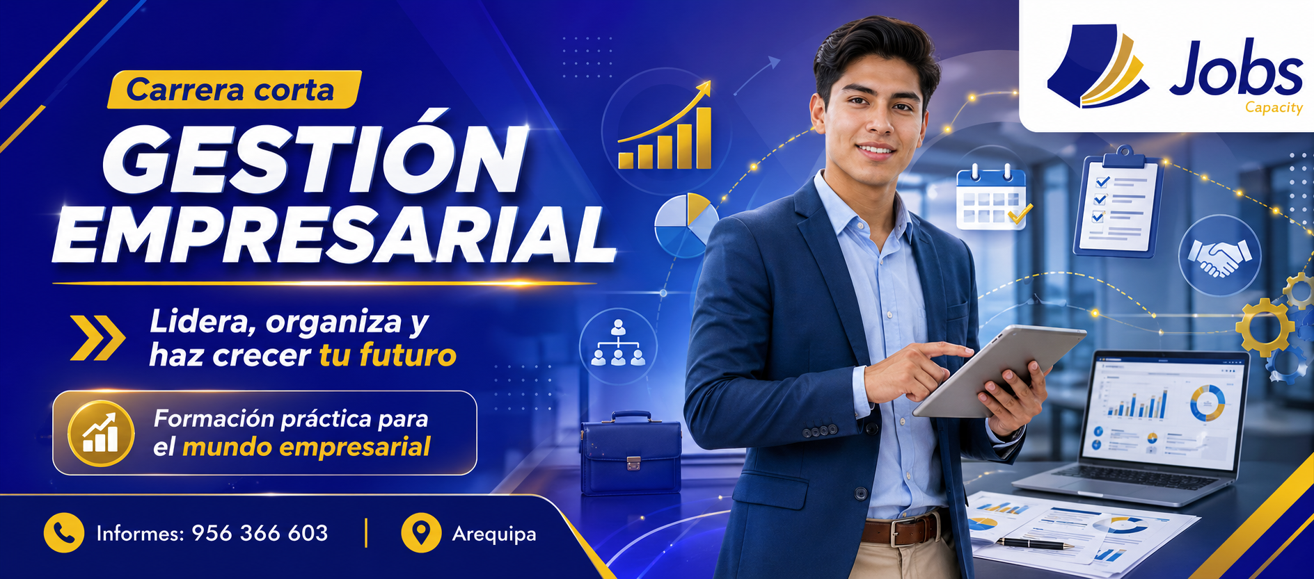 La carrera corta de Gestión Empresarial, permite especializarse en corto tiempo en operaciones administrativas, marketing, administración de personal, logística, proyectos de inversión, estrategia empresarial, documentación contable y finanzas.